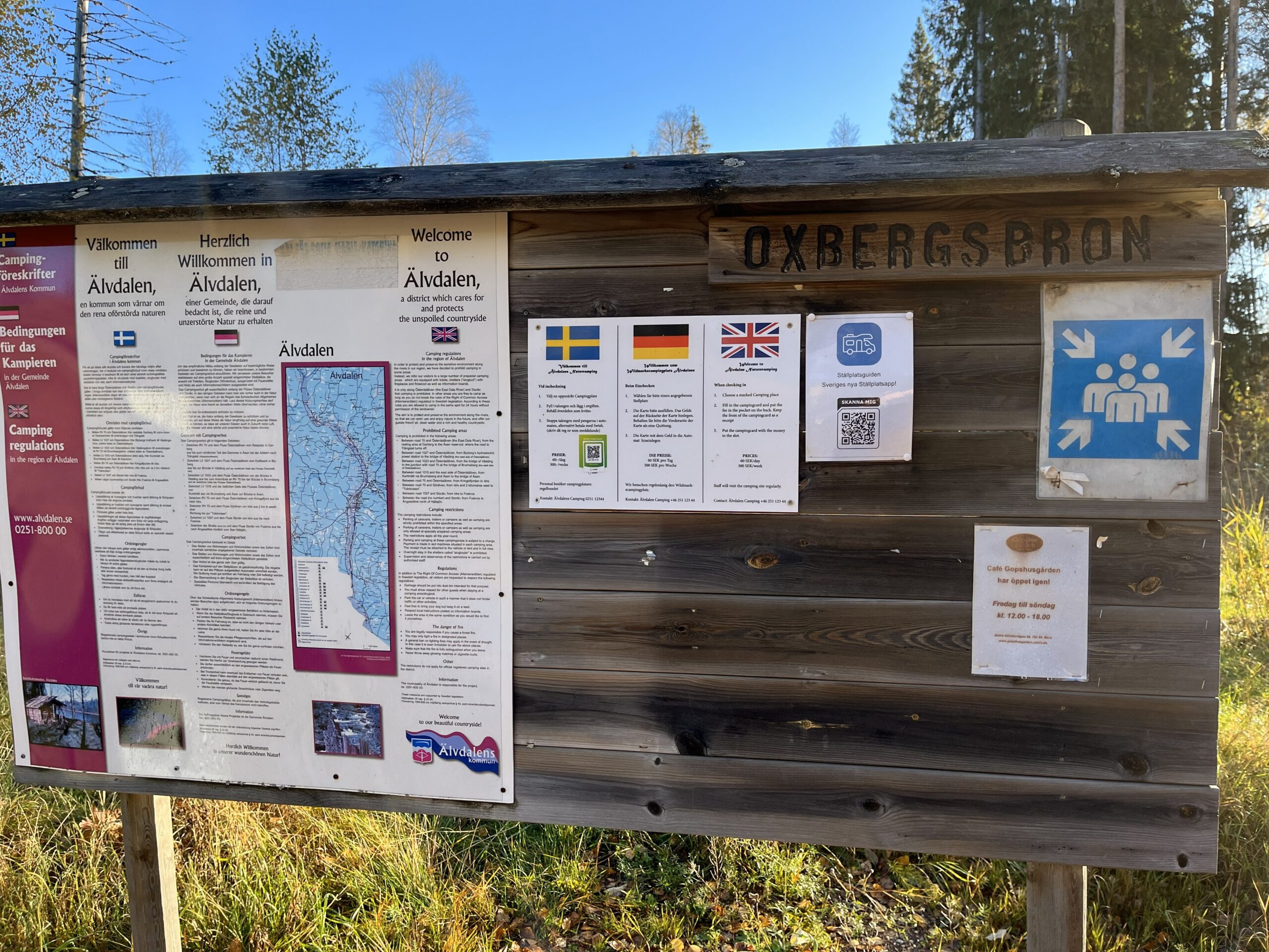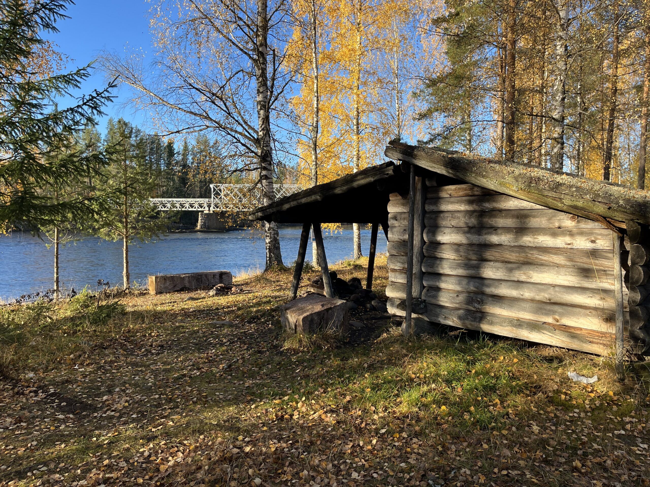Flera mysiga grillplatser finns längs älven, så man behöver inte hålla sig till slogboden vid lunchpausen, även om den är fint belägen med utsikt mot bron.