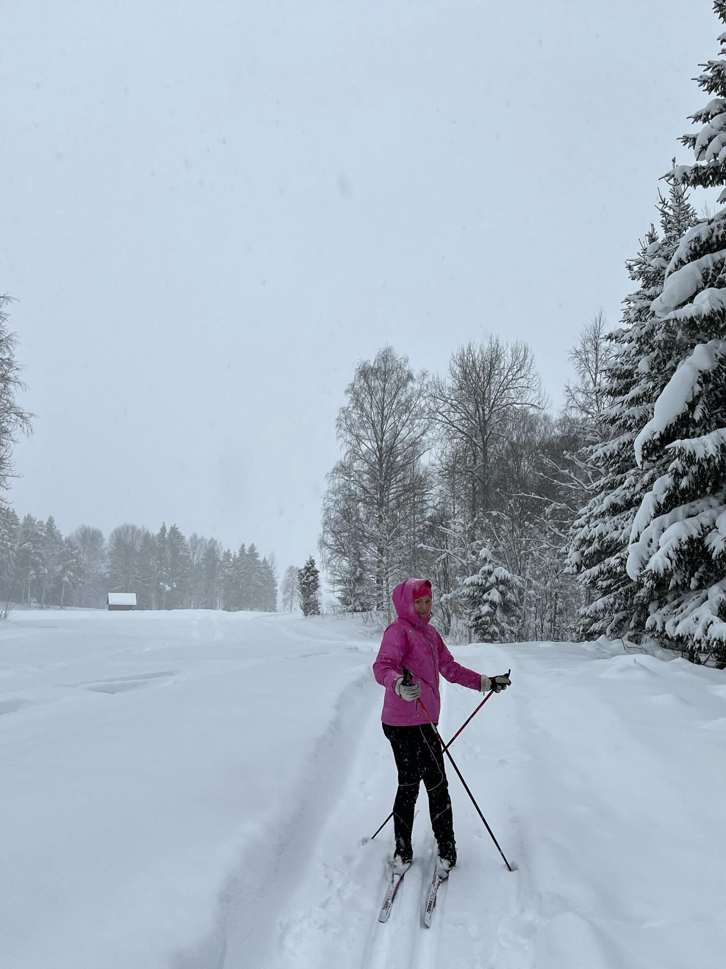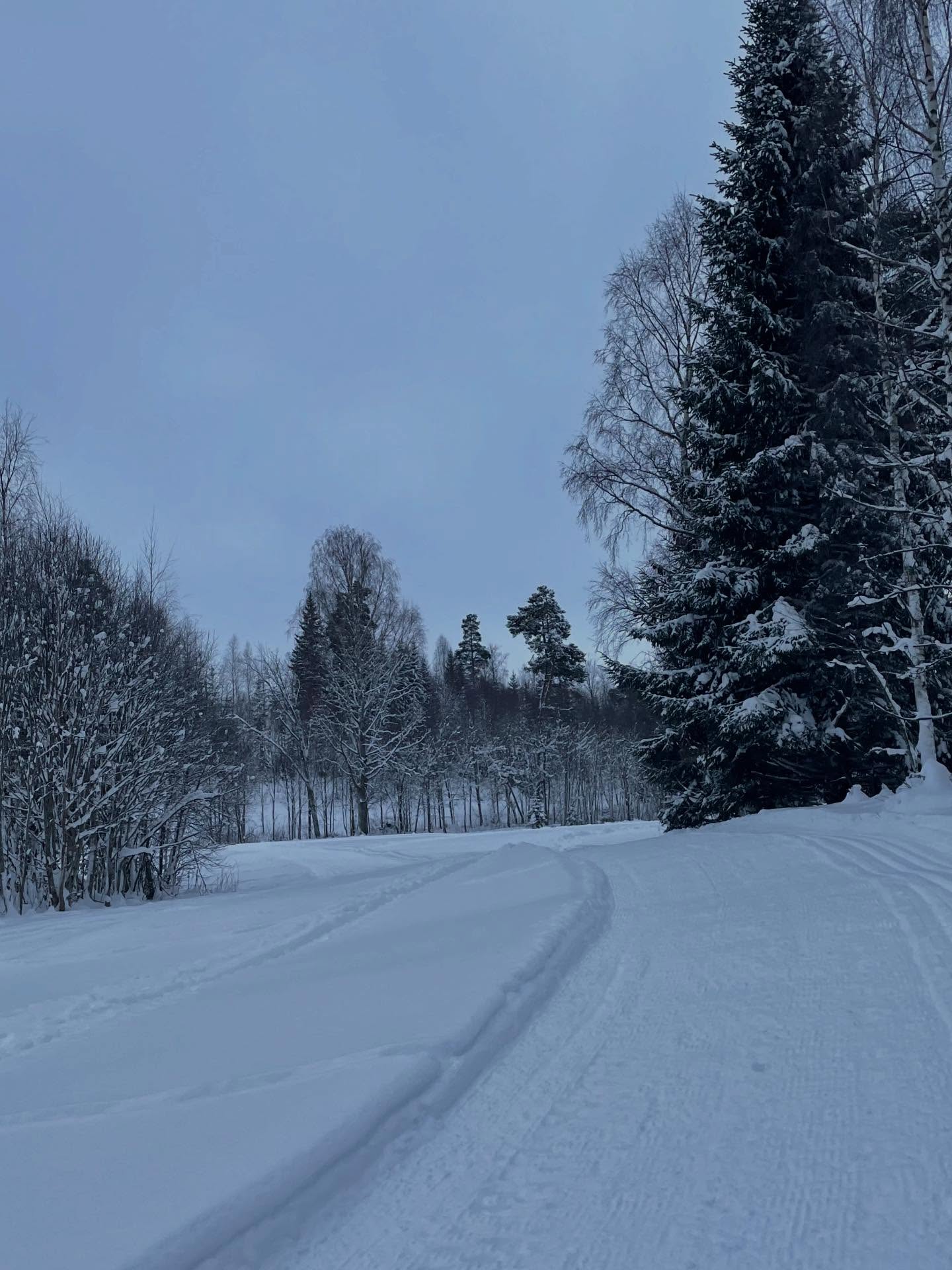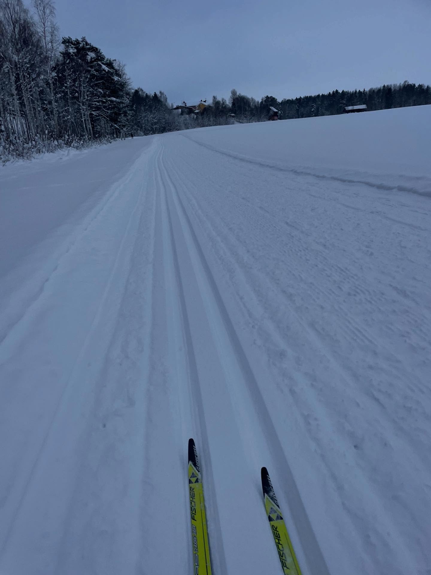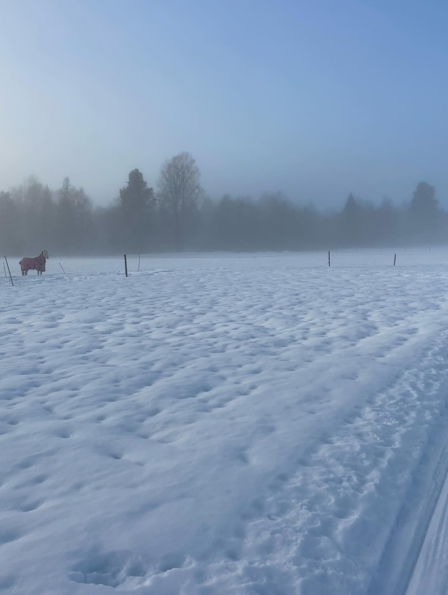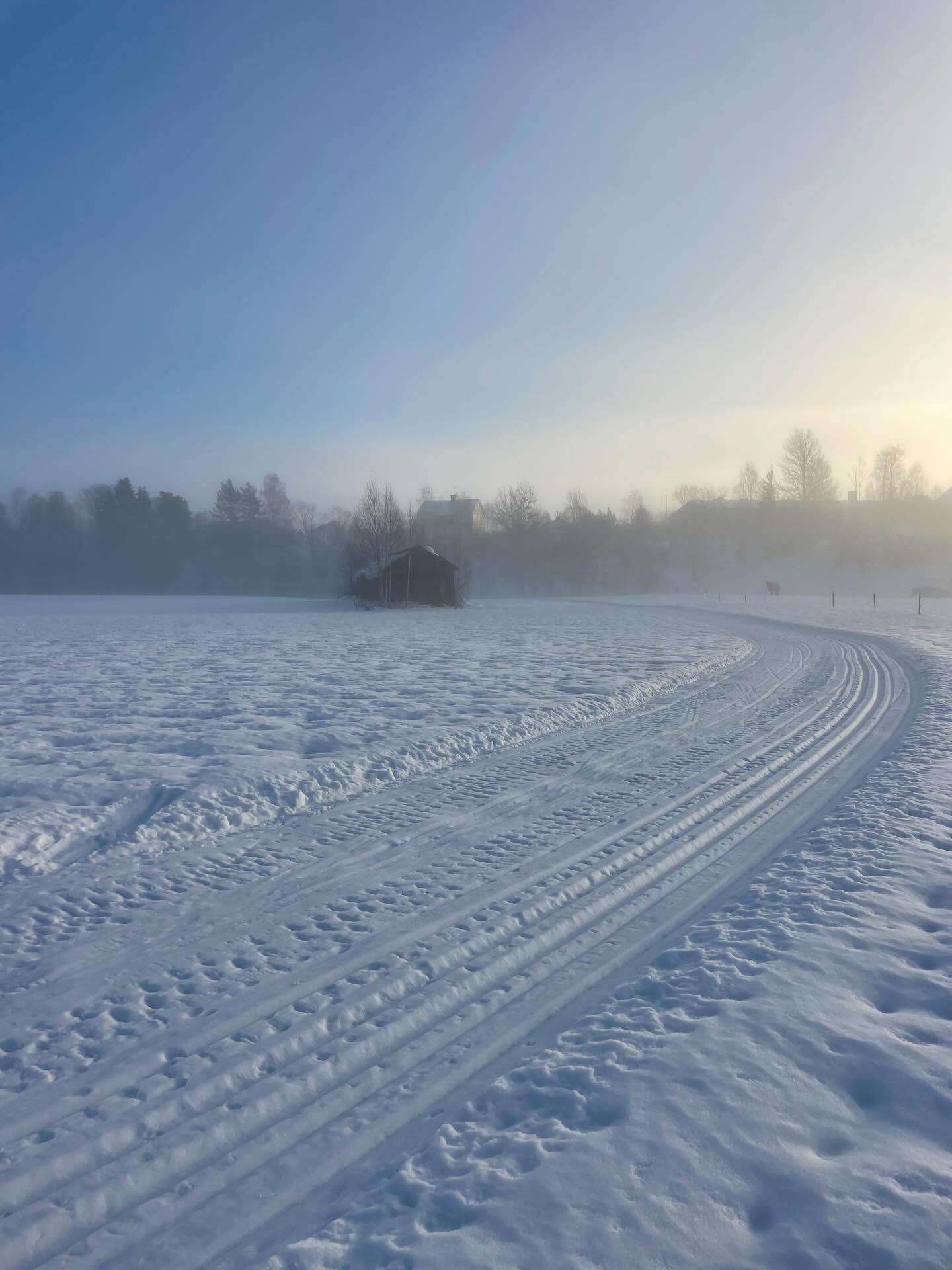 En tredje gång åkte vi dagen efter regn och tö då spåren börjat frysa på ordentligt och då fick man upp bra med fart! Spåren var då helt fantastiska, det var otroligt stämningsfullt och det skapades ett magiskt ljus när solen försökte bryta igenom dimman. Här var det full njutning och man kunde ta i och träna både klassisk åkning och skate.