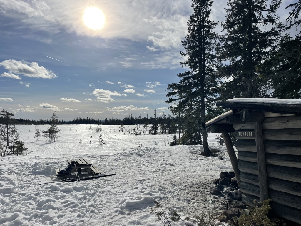 🏕️ Området har flera vindskydd/raststugor (t.ex. vid Blomtäkt, Tunturi, Flickeråsen) där du kan ta paus, grilla korv, göra upp eld eller till och med övernatta. Ved finns, men ta med egen övrig utrustning och skräp ut.