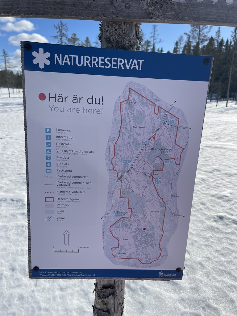 🌨️ Ett par markerade slingor finns och på bra vinterdagar kan du göra långa turer.