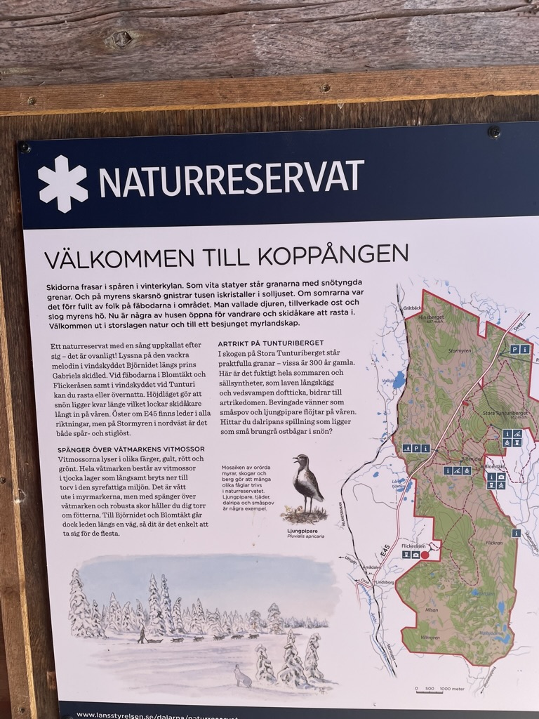 Koppången är ett stort naturreservat norr om Orsa känt för sitt vidsträckta, snösäkra högland och öppna myrmarker. Området brukar ha snö länge under vintern — ofta långt in i mars och ibland ända till maj — tack vare höjd och klimat.