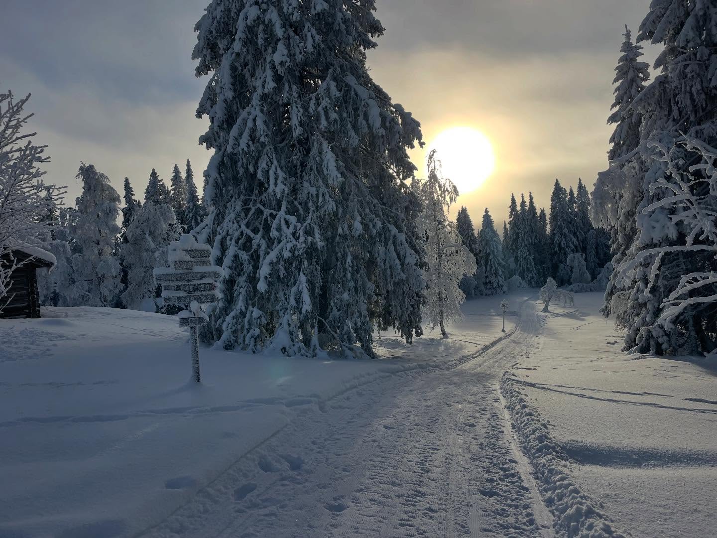 Nybörjare kan välja den fint spårade Prinsleden på 2 km som inte innehåller några svåra partier utan bara låter dig uppleva sagolikt snötäckta träd och myrmark. Den här korta slingan passerar ett fint vindskydd som kallas Björnidet där du kan vila, finna lä, äta matsäck och tända en eld för att få upp värmen eller om du vill grilla något.