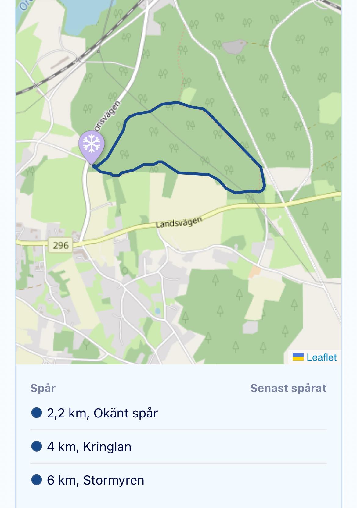 I Skattungbyn finns 3 spår (2,2, 4 och 6 km). Vi hade hoppats på att prova 6-kilometersspåret, men endast det kortaste som också är ett elljusspår var spårat när vi var där. Orsa kommun drar spåren här.