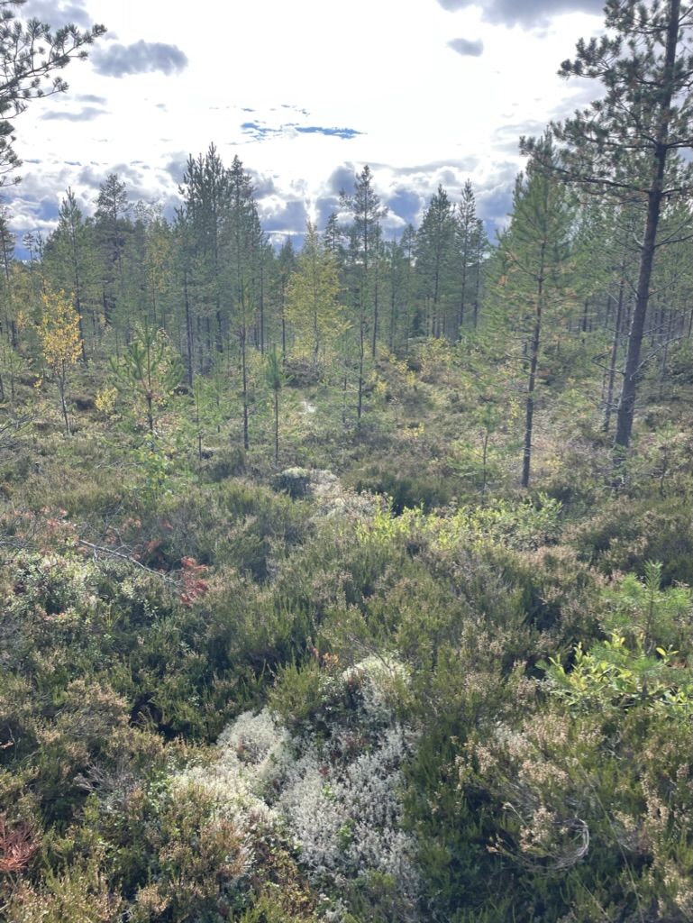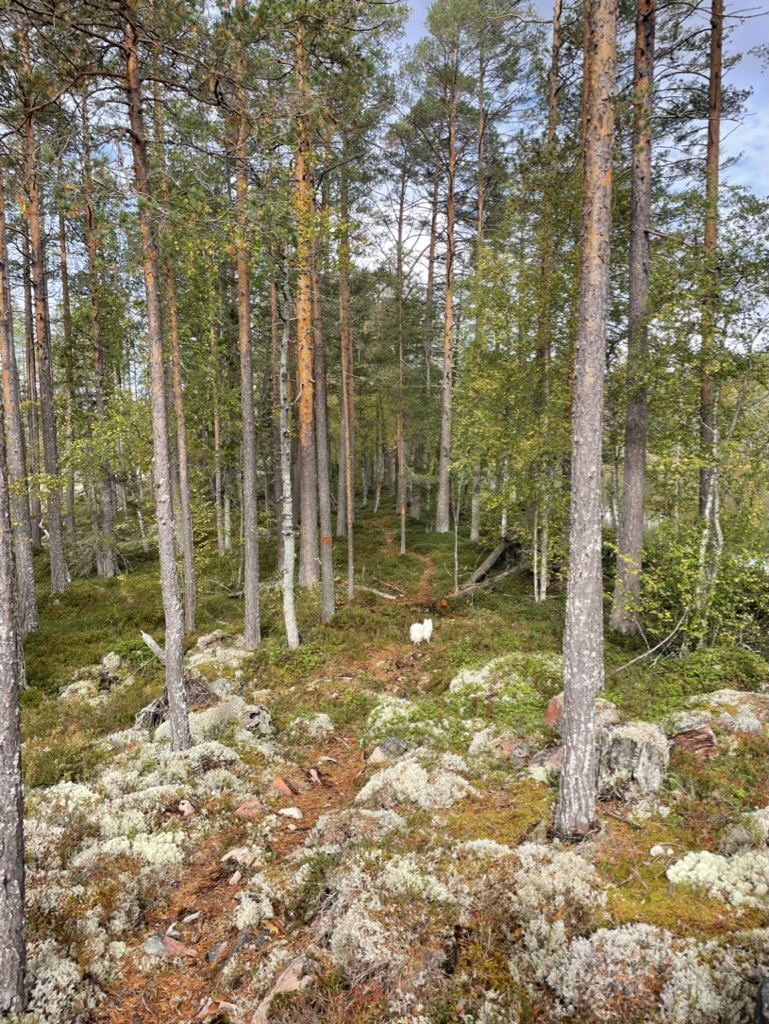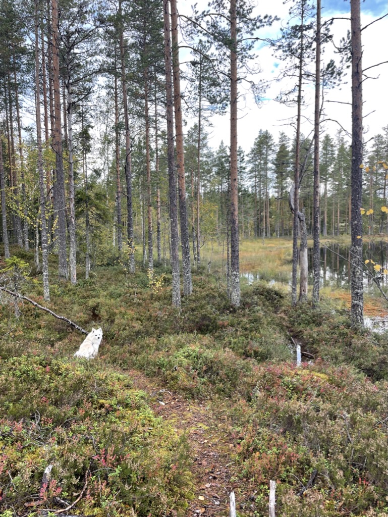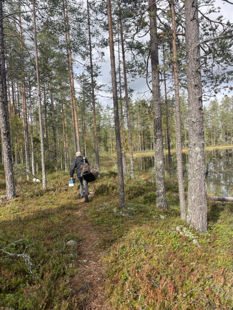 Vandringen fortsätter sedan upp mot en utsiktsplats på berget, där vyerna öppnar upp sig över den vidsträckta finnmarken. Efter att ha tagit sig ner igen gäller det att vara uppmärksam om man vill hålla fötterna torra, då leden åter passerar genom blötare mark. Just den här årstiden var det rejält fuktigt på sina ställen, så vattentäta kängor eller stövlar är verkligen att rekommendera.