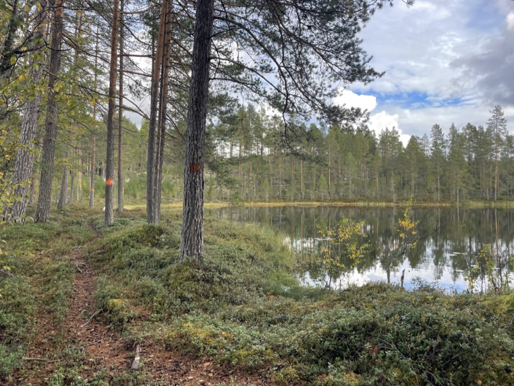 Pållasnittuttjärnarna – wow. Två små tjärnar som ligger stilla intill varandra, med en slogbod intill. Det är något med den här platsen som är svårt att sätta ord på. Tystnaden, ljuset, vattnet som speglar omgivningen – det känns nästan som att kliva rakt in i en saga. Det är så vackert att det nästan gör ont, och det är inte långt ifrån att tårarna kommer när man står där och bara tar in allt.