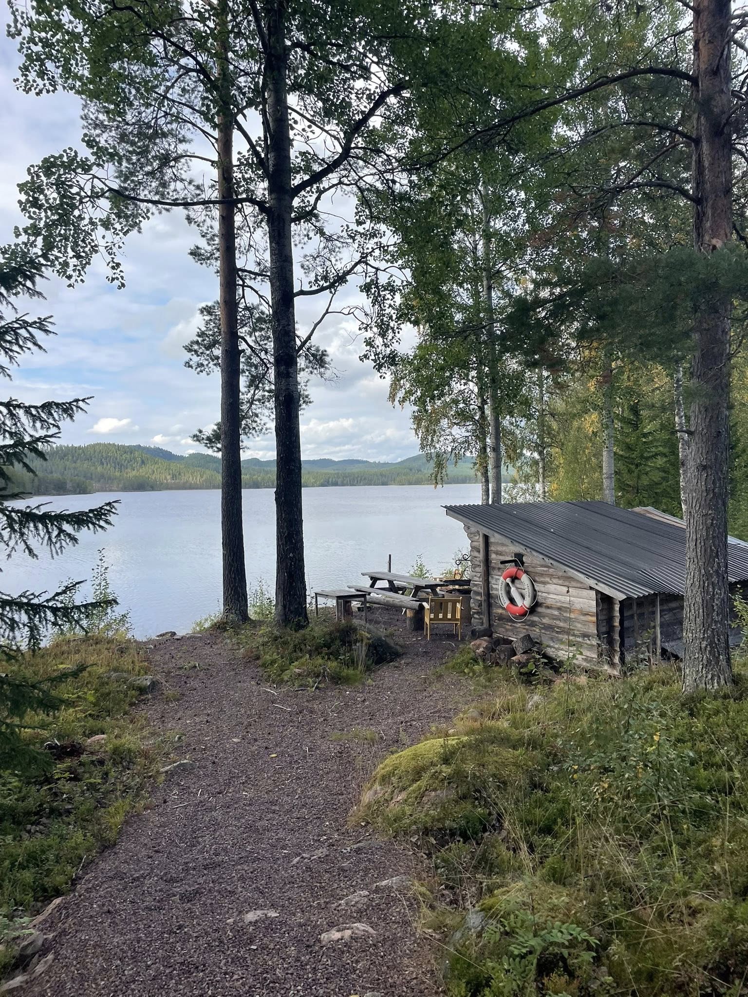 På sjöns sydsida vid järnvägen ligger ett fint vindskydd och en badbrygga om du vill stanna till och ta ett dopp.