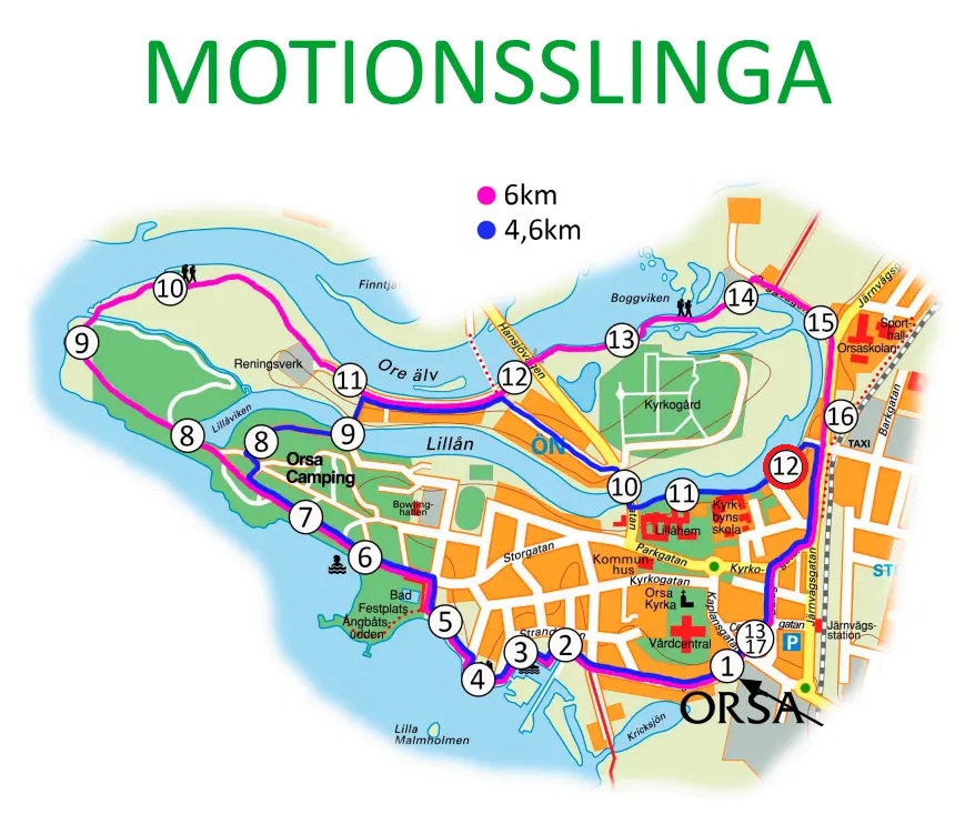Orsaslingan går precis utanför Strandvillan och det är en vacker och varierad rundvandring på cirka sex kilometer som bjuder på natursköna stigar och storslagna vyer över ån, älven och Orsasjön med de blånande bergen i bakgrunden.