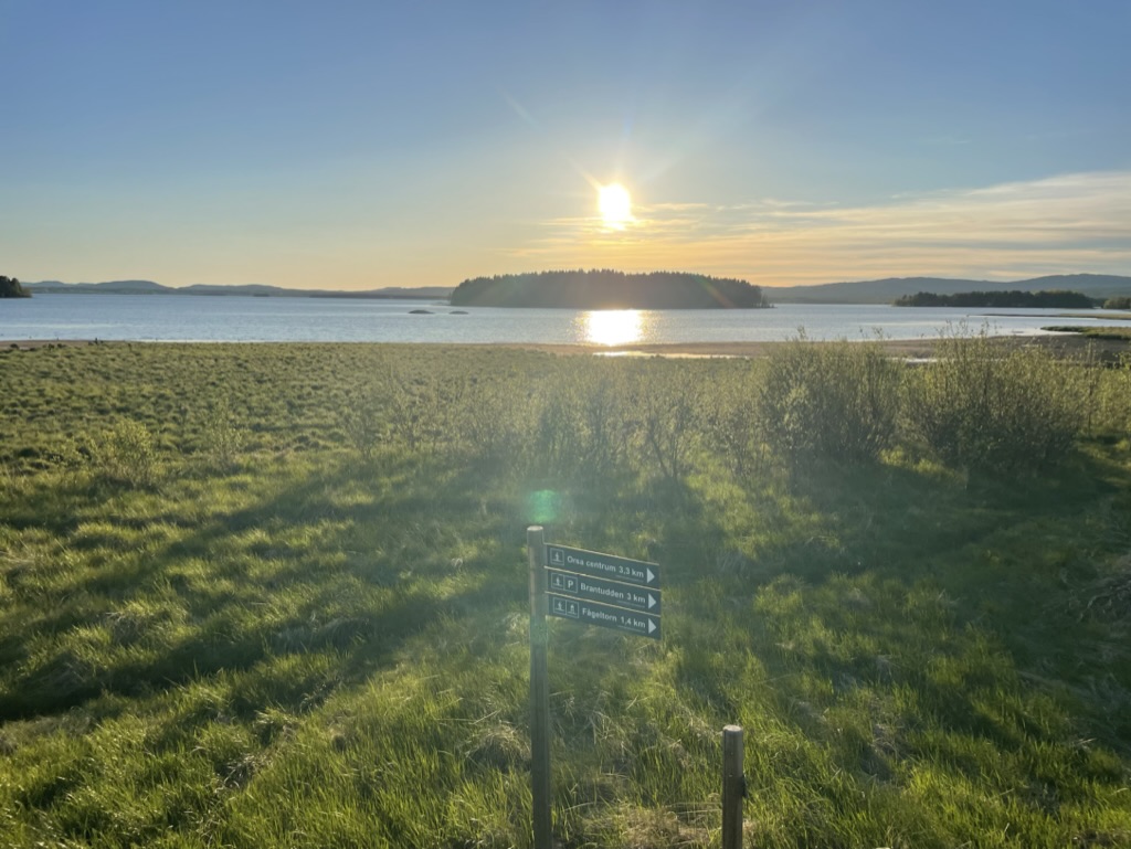 Vi brukar oftast utgå från Brantudden där du passerar förskolan och Kricksjön till vänster och till höger ligger Orsasjön och under sommartid kan du om du har tur få se de vackra kyrkbåtarna Sturfajt´n II och Sturfajt´n III.
