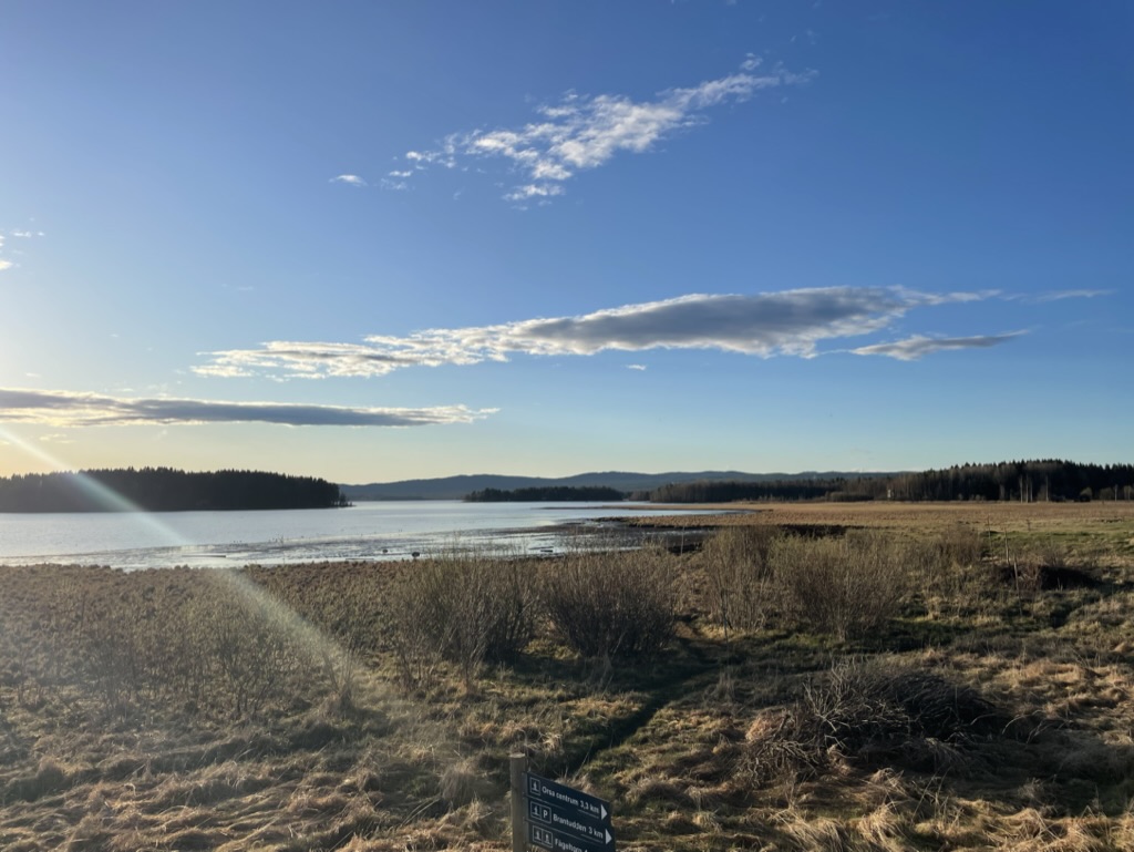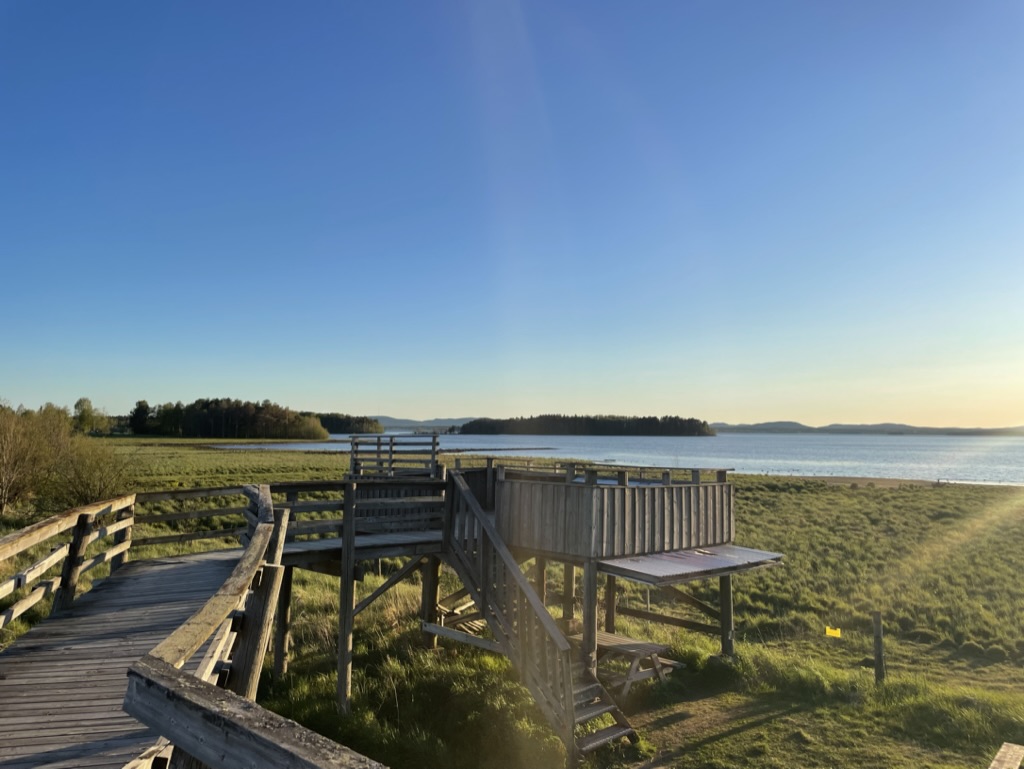 När skogen öppnar sig når du det första fågeltornet. Här möts du av ett stilla sus och ett kor av fågelkvitter. Utsikten tar andan ur dig – Orsasjön breder ut sig som en spegel, med ljuset dansande över vattenytan och höglandet i fjärran. Du står mitt i naturen, men ändå ovanför den, med panoramavy över ett levande landskap.