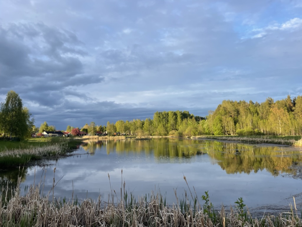 Snart når du en liten gångbro över en bäck – och här, mitt bland de täta träden, förändras allt. Vattnet under dig glimmar i gröna nyanser, stilla och djupgrönt som glas. Det känns nästan som att stå i Amazonas; du väntar dig nästan att en krokodil ska bryta ytan. Här är naturen påtaglig, intensiv och samtidigt stillsam – en plats där tiden upphör.