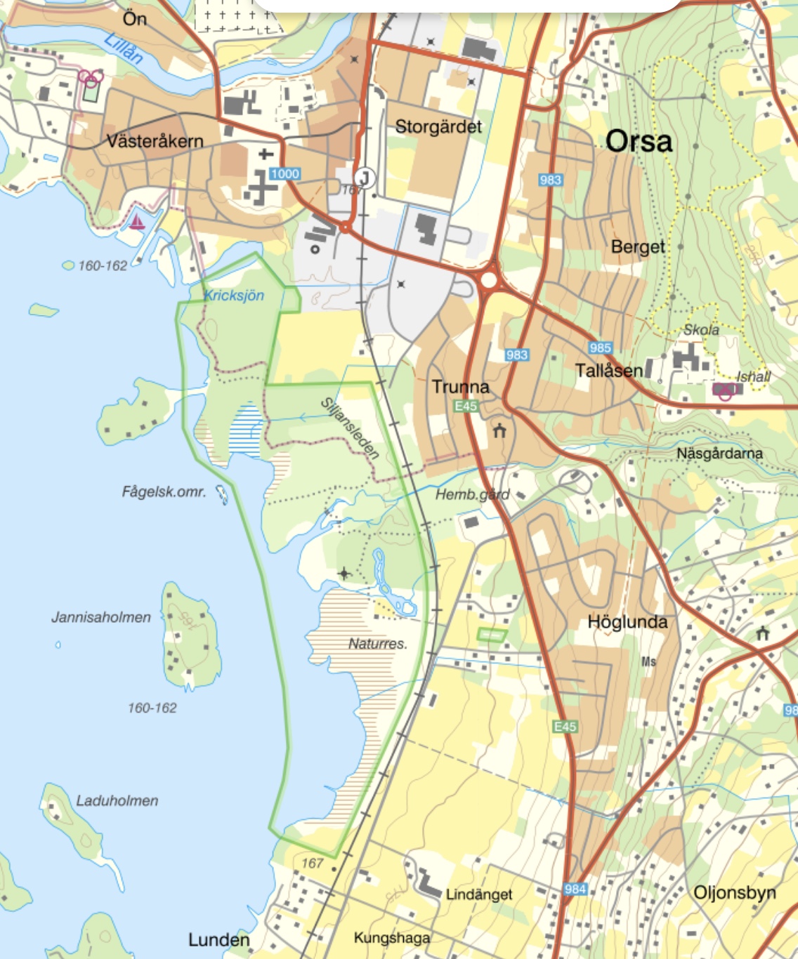 Sevärdheter: Två fågeltorn, vyer över Orsasjön, rikt växt- och djurliv